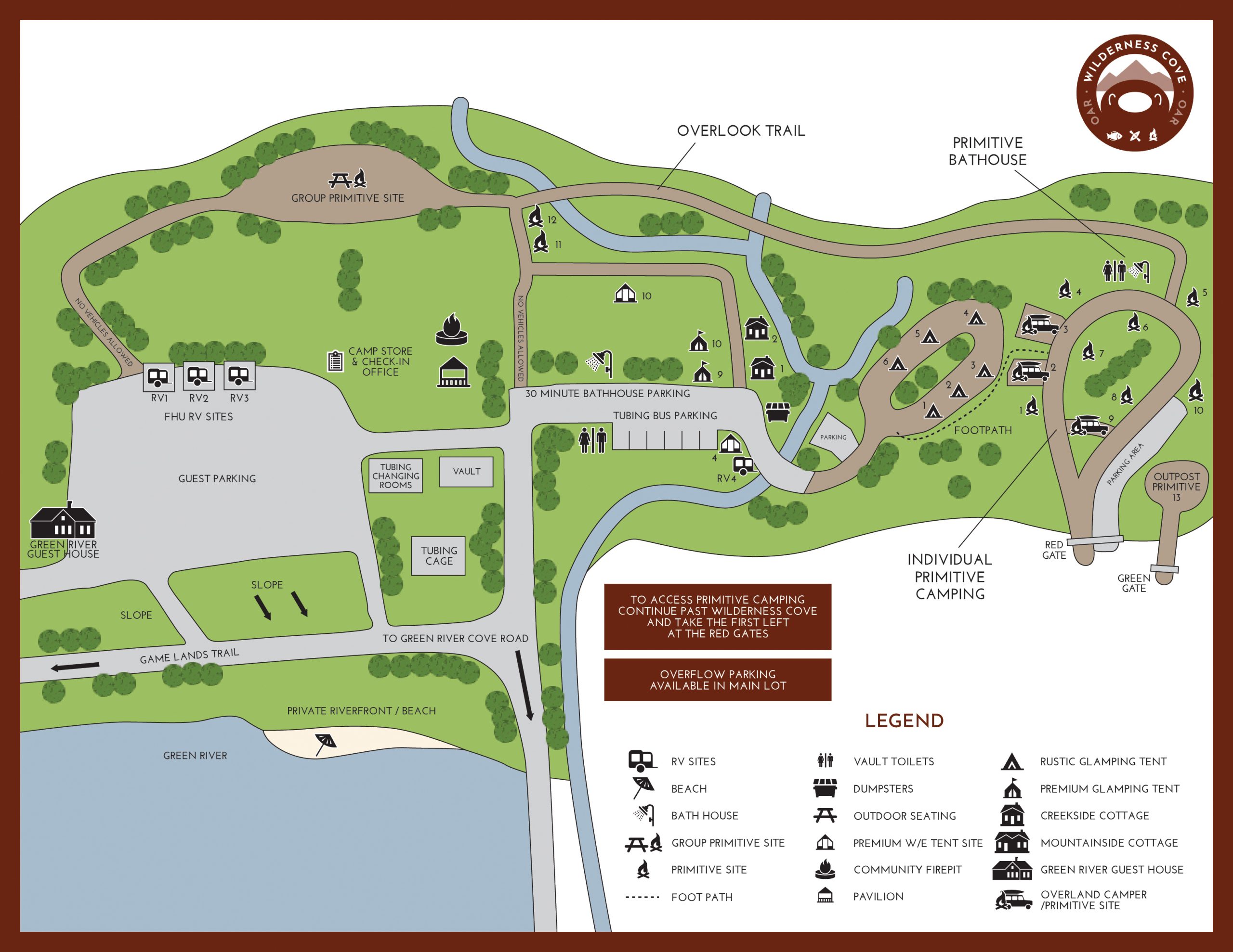 Enjoy some of the best hiking, fishing, mountain biking and hunting lands in the country directly from Wilderness Cove. With direct access to the Green River and the Green River Gamelands, you can begin your adventure directly from your campsite!